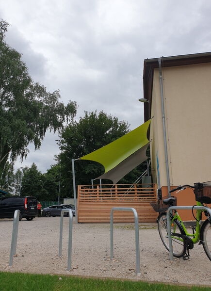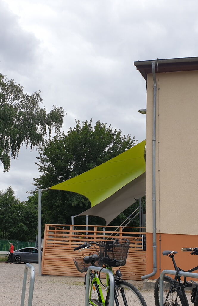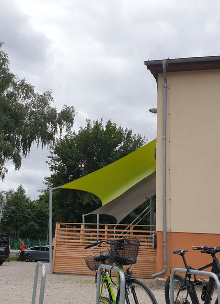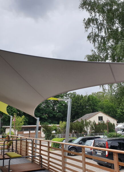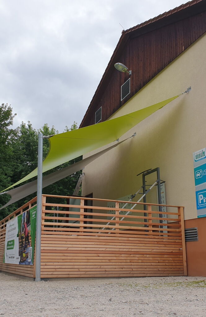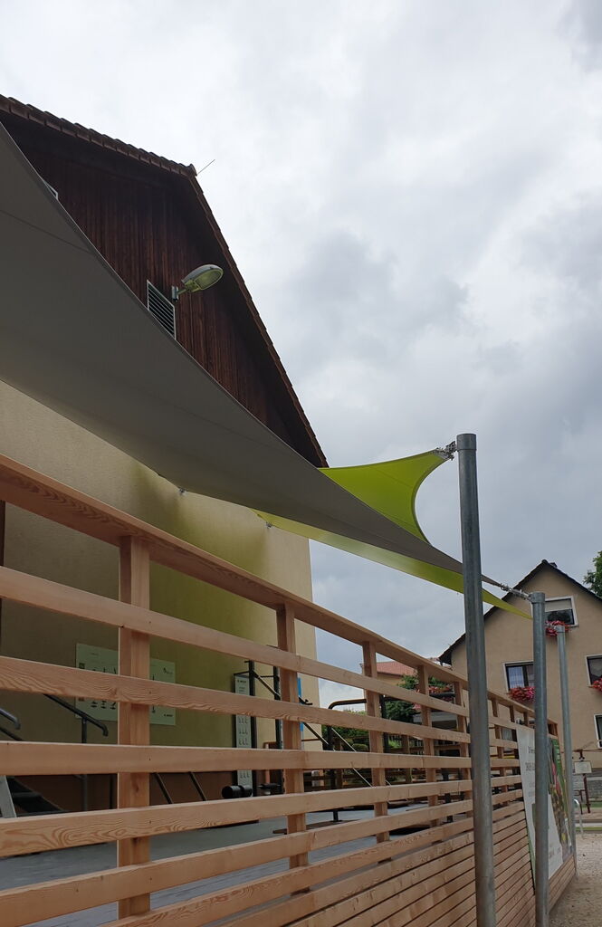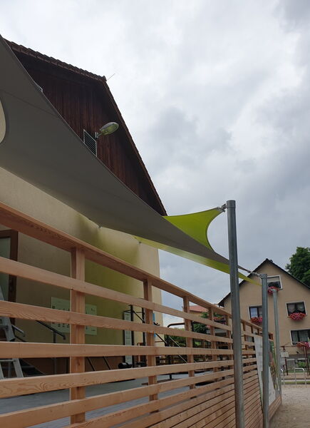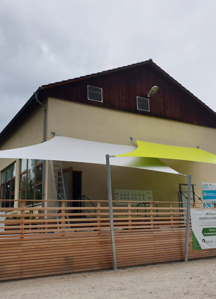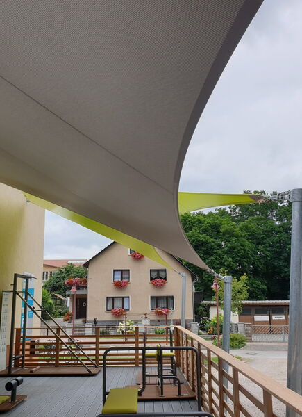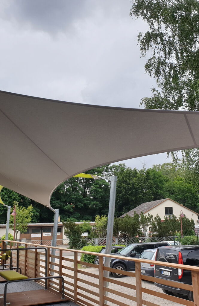 - Erhöhte Lebensqualität: Die Kunden des Fitnessstudios können somit die Außentrainingsfläche ausgiebig nutzen und erfreuen sich an der dauerhaften Beschattung über die gesamte Sommersaison von April bis Oktober. Durch die wasserdichten Segelmaterialien kann die Außentrainingsfläche auch bei Regen genutzt werden. Die Geräte und die Kunden sind bestens vor Witterungseinflüssen geschützt.